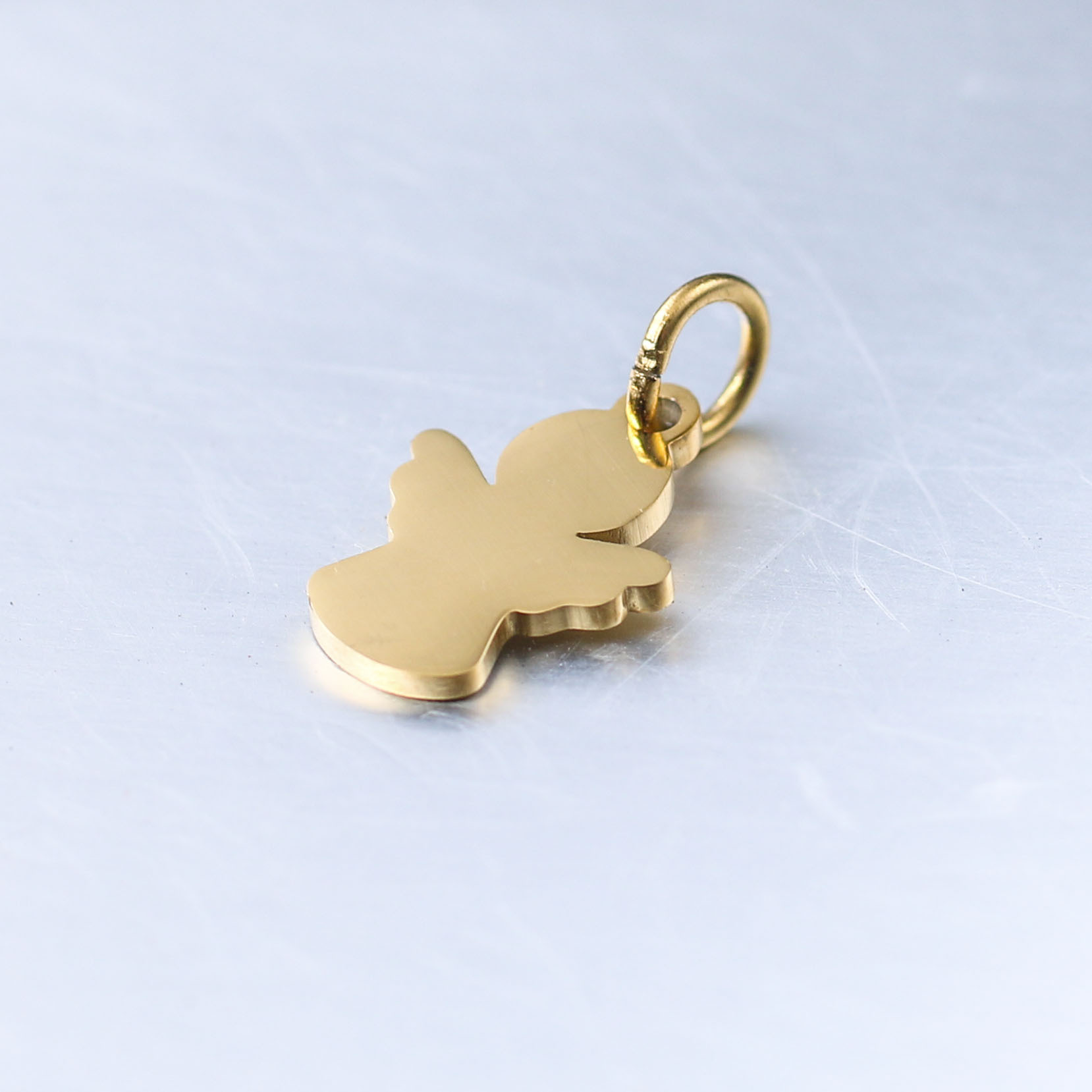 Ces pendentifs d’ange en acier inoxydable stylisés sont proposés en lots de cinq unités pour permettre la fabrication de bijoux. Ils sont soit dorés soit argentés et mesurent 1,6 cm de hauteur sur 0,9 cm de large. Ils sont tout mignons ces petits anges et le maillon qui servira pour les assembler est présent.