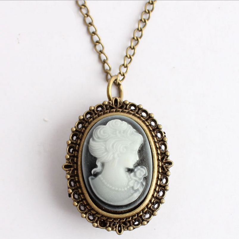 Un collier de style vintage fait en acier inoxydable qui saura résister au temps et lui aussi traverser les époques. Le camé est gravé selon la tradition et ce pendentif est disponible en trois styles de gravures différentes : le portrait d’une femme, une rose blanche et une fleur rose.