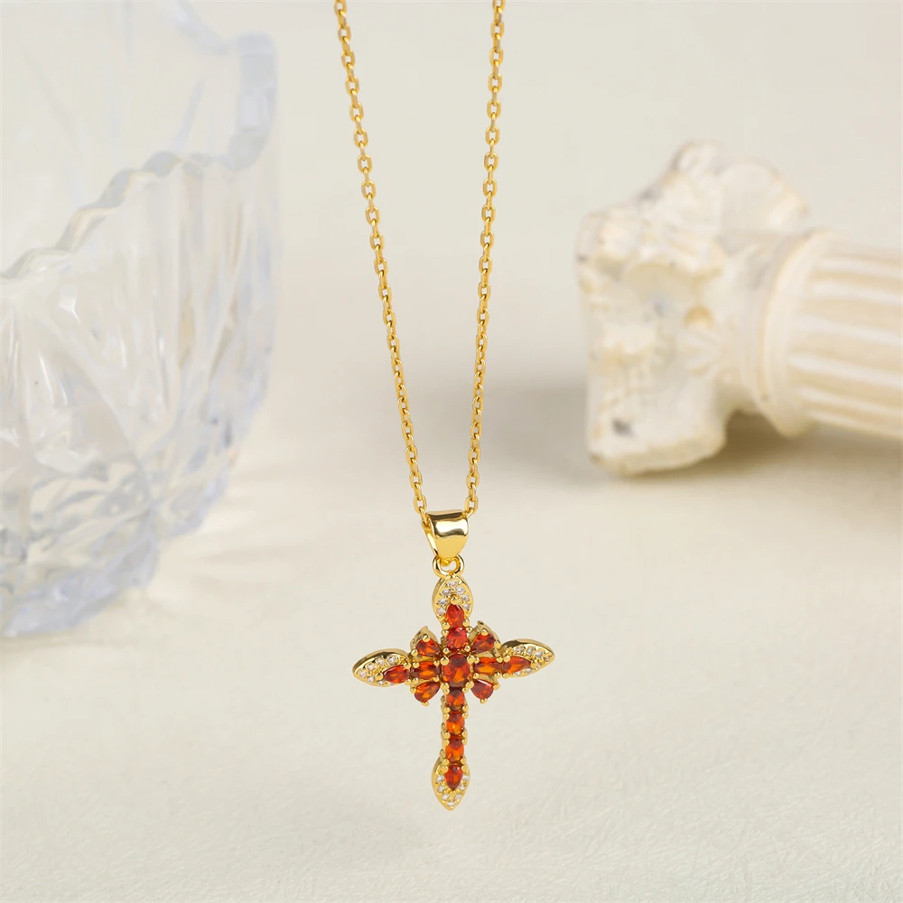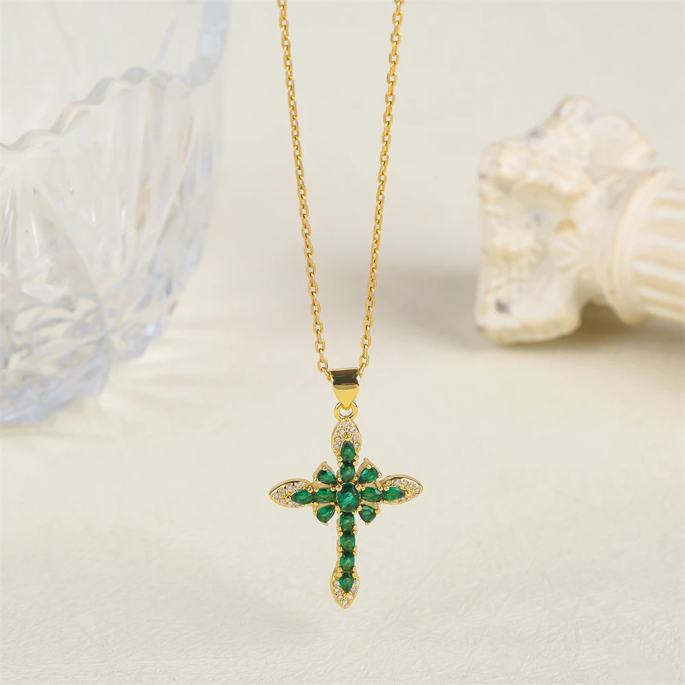 Arborez ce pendentif en forme de croix avec ses pierres naturelles scintillantes pour ajouter une touche de couleur et de lumière à votre quotidien. Chaque pierre est méticuleusement incrustée dans une structure en cuivre doré, reflétant votre foi avec une brillance inégalée.