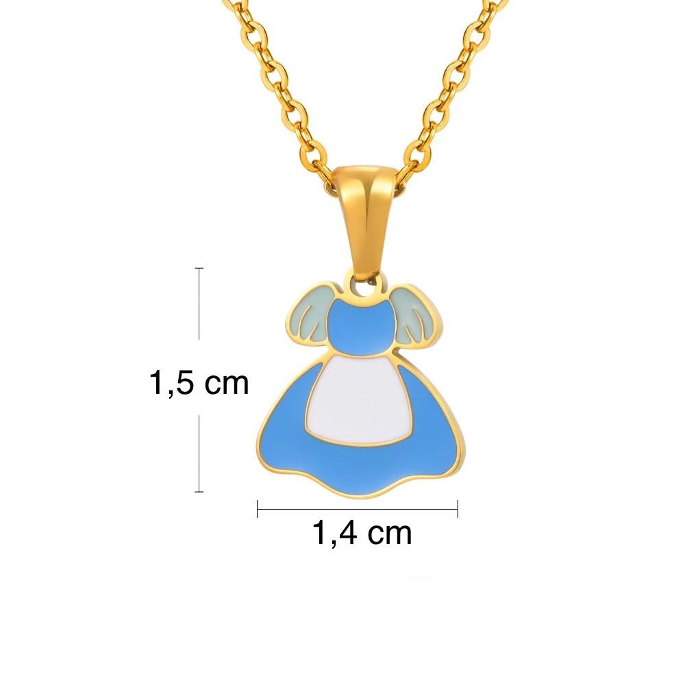 Ce pendentif plaqué or est suspendu à une chaîne délicate qui tient bien en place sans gêner les mouvements. Que votre enfant rêve de Blanche-Neige ou de Cendrillon, deux robes de princesses sont proposées pour répondre à toutes ses envies. Les détails colorés en émail donnent vie au bijou tout en restant raffinés.