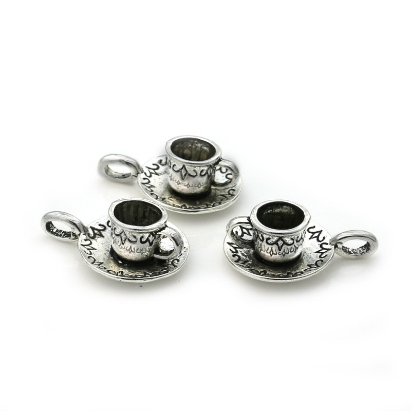 Vous aimez siroter une tasse de thé en prenant votre temps ? Ces superbes pendentifs sont faits pour vous ! Ce lot de cinq pendentifs argentés originaux représentant une tasse de thé et sa soucoupe sera parfait pour vous et à offrir à vos meilleures amies… autour d’une tasse de thé, bien sûr !