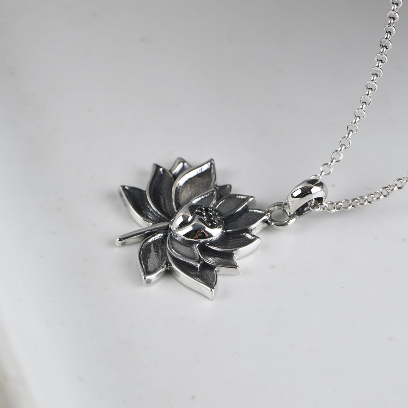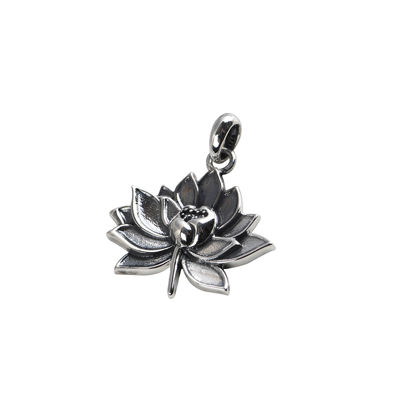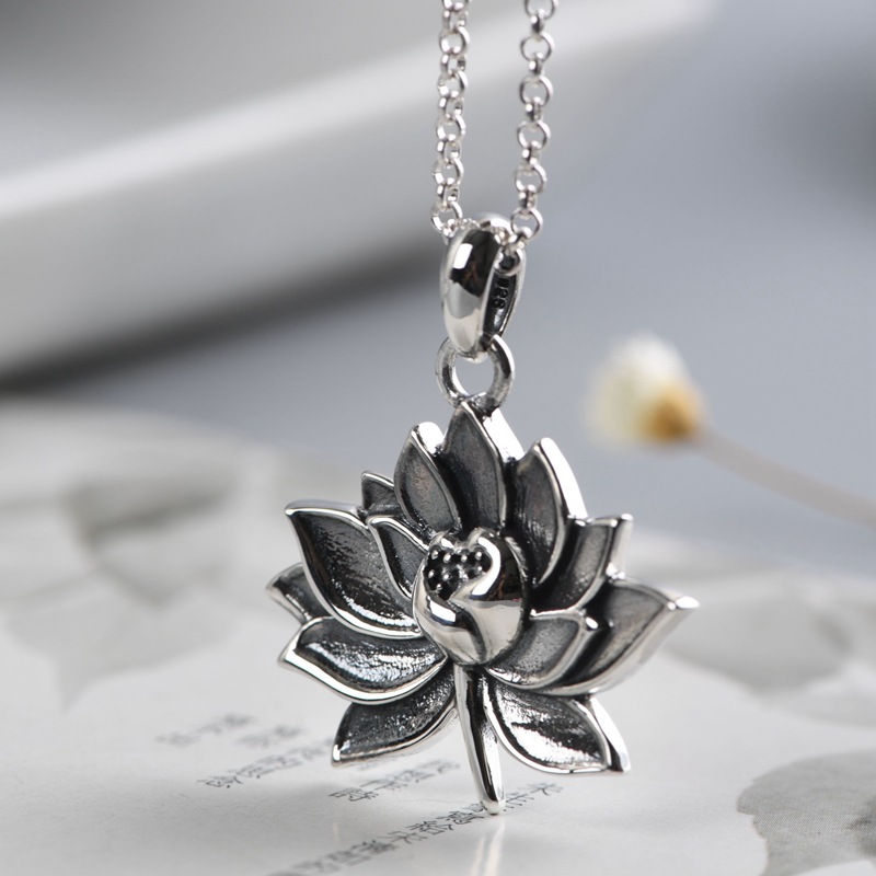 Pendentif fleur de lotus vintage en argent Sterling 925 ou S925, vieilli pour le look