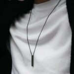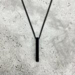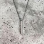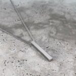 Laissez-vous séduire par la sobriété moderne du pendentif collier géométrique homme style épuré métal. Avec ses lignes nettes, sa forme rectangulaire longue et sa finition lisse, ce bijou impose une élégance calme et assurée.