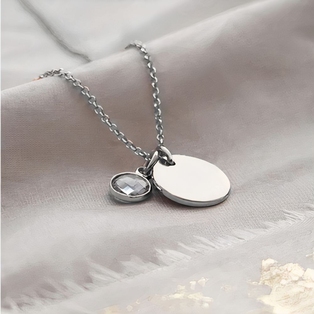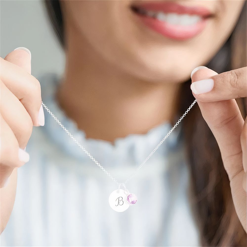 Chaque mois de naissance a sa couleur, sa symbolique, son éclat particulier. Ici, elle vient souligner l’initiale gravée comme une petite lumière suspendue. Ce n’est pas un bijou de tendance, c’est un bijou de cœur. Il vous accompagne sans ostentation, dans les jours ordinaires comme dans les moments qui comptent.