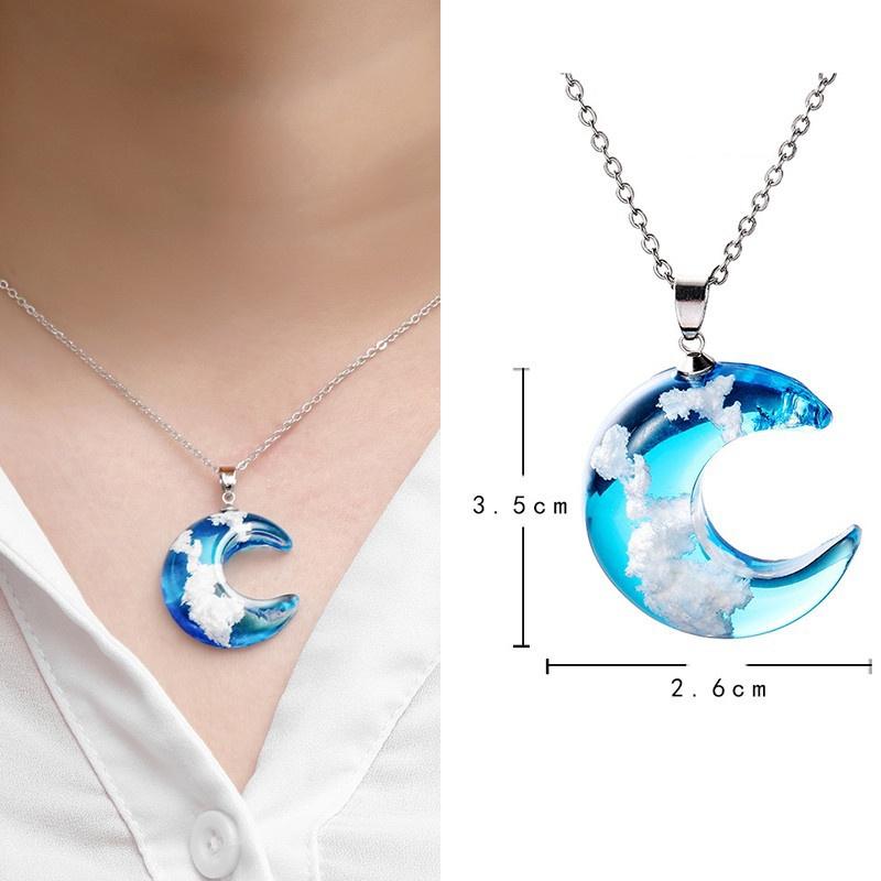 Ce pendentif en forme de lune se distingue par son style unique. Le motif réaliste d’un ciel bleu et nuages lui confère une beauté particulière, créant ainsi un bijou captivant qui attire le regard. Son esthétique originale et distinctive en fait un accessoire tendance et charmant qui réhausse toute tenue.