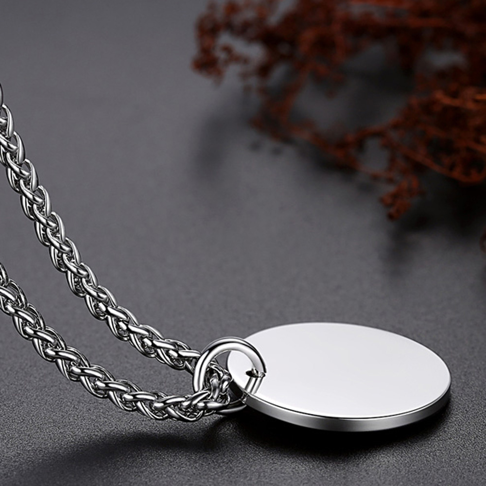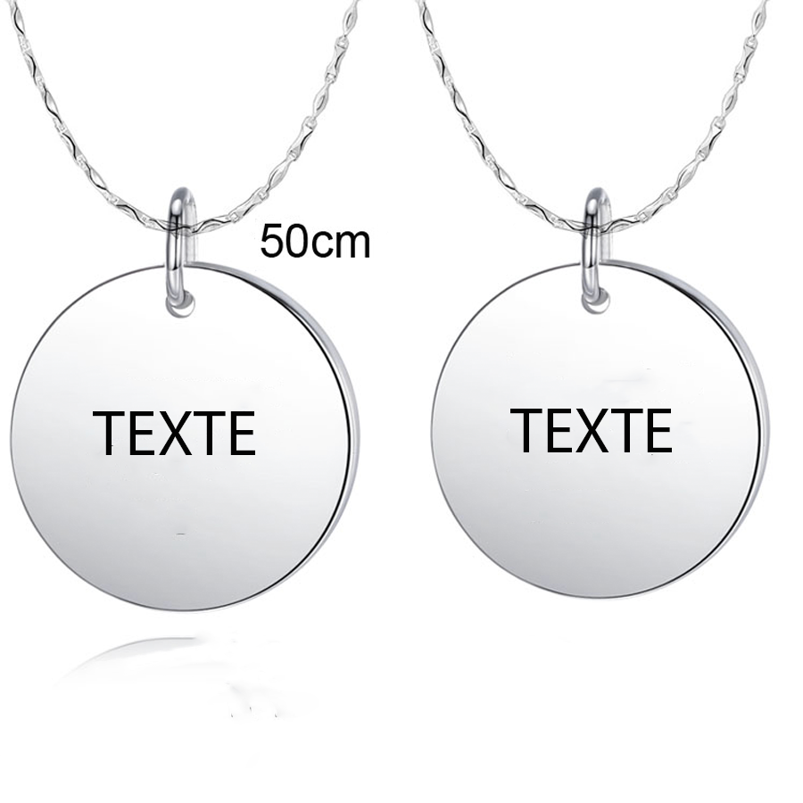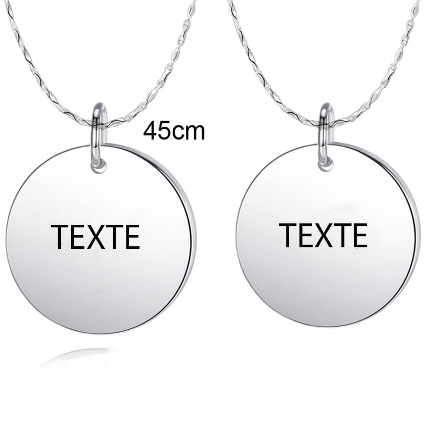 Ce collier est composé d’une chaîne à maillon en argent sterling et d’un petit pendentif rond lui aussi en argent de haute qualité, ainsi il ne rouille pas et gardera son éclat pour toujours. Un bijoux délicat et raffiné, fabriqué avec soin et précision, que vous pourrez personnaliser en le faisant graver.
