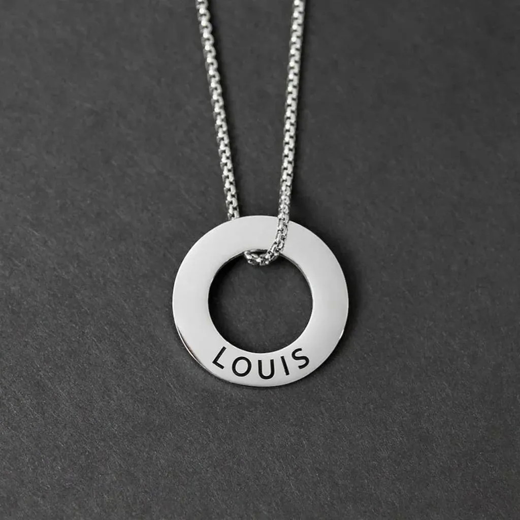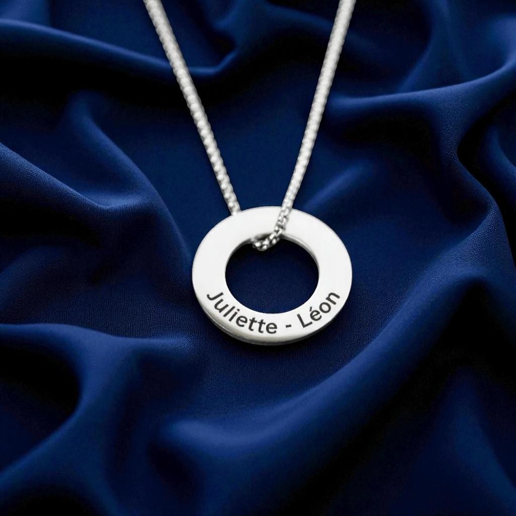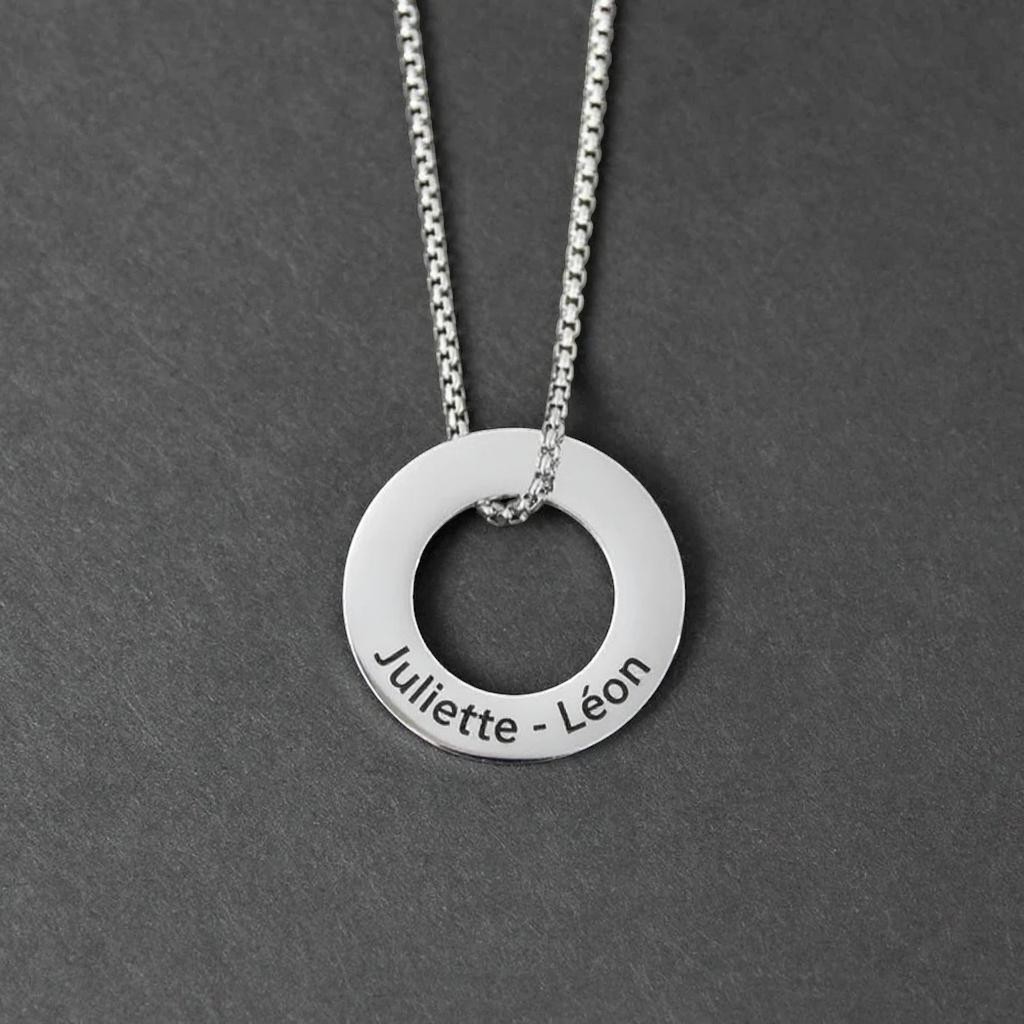 Vous cherchez un bijou simple, solide, mais chargé d’intention ? Ce pendentif personnalisé homme anneau acier gravé a tout ce qu’il faut. Vous choisissez un prénom (ou deux), et il devient le cœur du bijou.