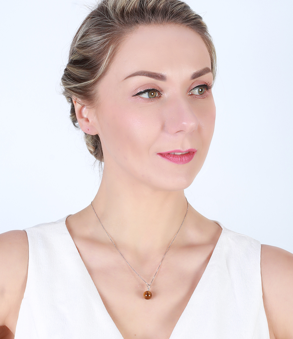 La boule en œil de tigre est suspendue à une délicate chaîne en véritable argent sterling 925, qui ajoute une touche de sophistication et de raffinement au collier. Une longue et fine chaine avec une pierre naturelle oeil de tigre, travaillée de façon sphérique et polie pour faire ressortir son aspect lisse et brillant.