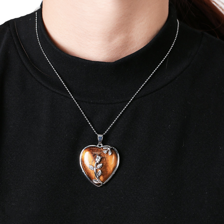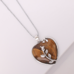 Ce collier pendentif œil de tigre en forme de cœur est un bijou exquis qui allie élégance et symbolisme. Fabriqué avec soin à partir d’une pierre naturelle d’œil de tigre, ce collier est fait avec un chaîne délicate à boules en plaqué argent, offrant ainsi un contraste subtil entre le métal brillant et la pierre.