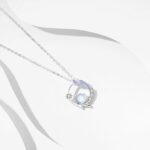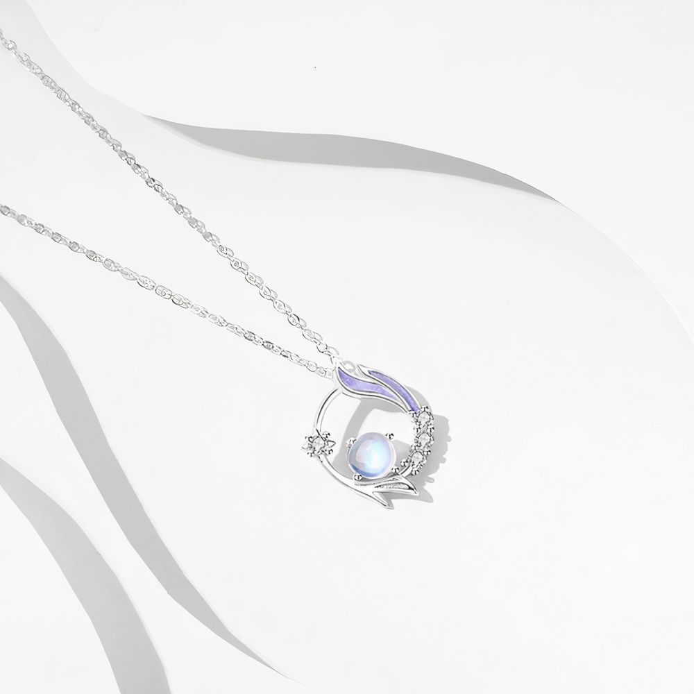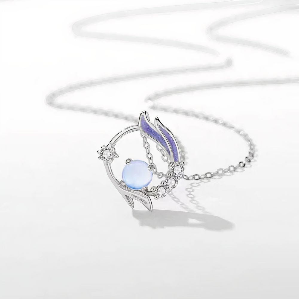 Elle se niche au creux du pendentif, entourรฉe de courbes argentรฉes et de touches de violet. Un jeu de textures et de reflets qui change subtilement selon la lumiรจreโฆ et votre humeur. Laissez-vous porter par son รฉclat tendre, jour aprรจs jour.