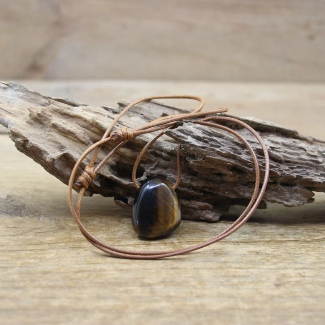 Portez ce pendentif discret en pierre naturelle pour un ajout subtil, mais puissant à votre garde-robe. Choisissez entre l’œil de tigre, l’aventurine ou l’améthyste pour un accessoire qui non seulement complète, mais élève également votre tenue. La chaîne en corde ajoute une touche rustique qui souligne l’authenticité du pendentif.