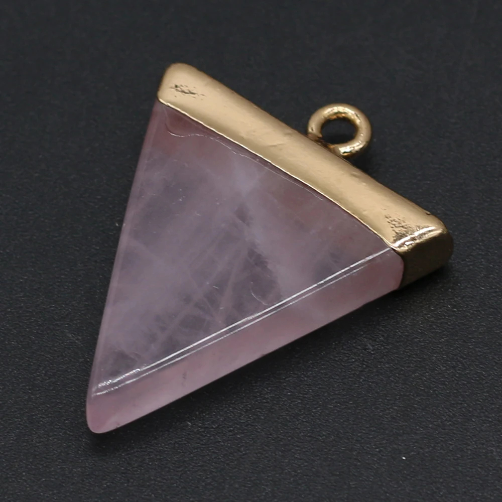 Adoptez ce pendentif triangulaire pour intégrer l’harmonie et la stabilité dans votre quotidien. Que vous choisissiez le quartz rose pour l’amour et la paix ou l’aventurine pour la prospérité et le courage, chaque pierre est façonnée avec précision en forme triangulaire, symbolisant la stabilité et la force dans une perspective esthétique et spirituelle.