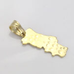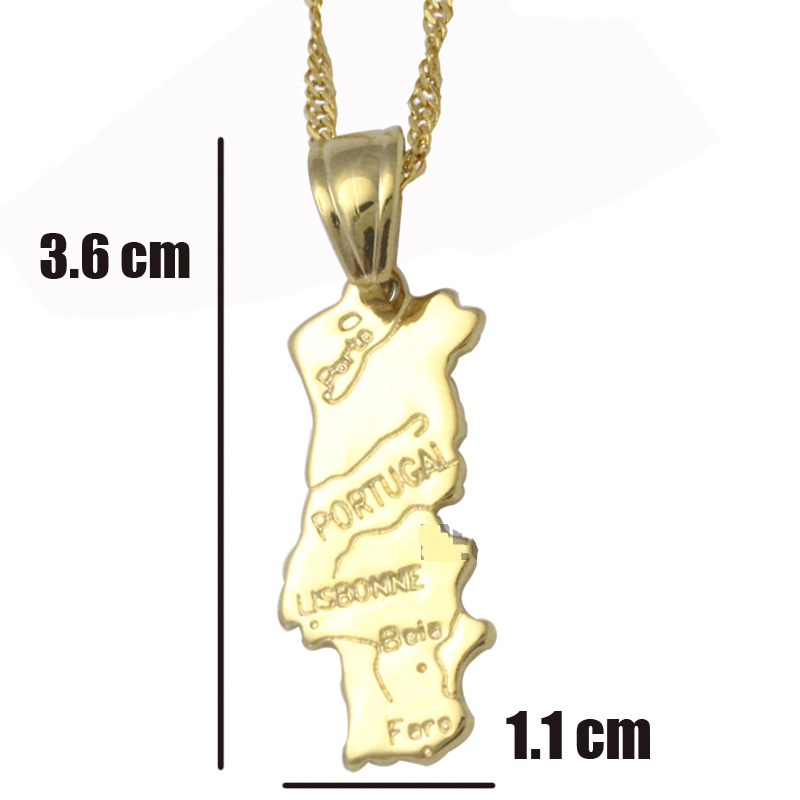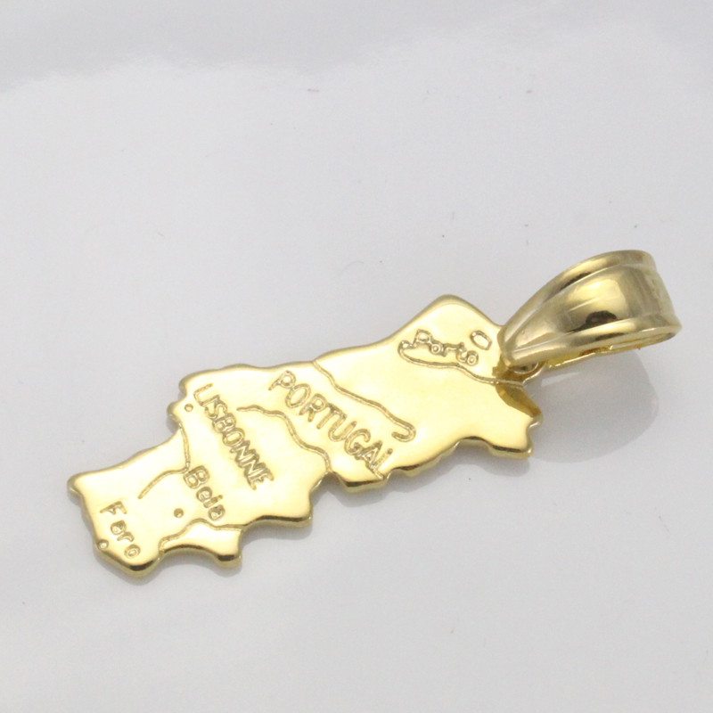 Ce pendentif doré en forme de carte du Portugal est proposé soit seul, soit avec une chaîne dorée également. Il pourra convenir à tous, femmes ou hommes, pour arborer fièrement la représentation de ce pays cher à votre coeur par naissance, adoption ou juste en souvenir de vacances aux moments inoubliables.