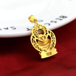 Le design de notre pendentif bouddha doré est à la fois élégant et raffiné. Sa silhouette est représentée dans une position de méditation, les jambes croisées et les mains posées sur les genoux. Chaque courbe et chaque pli de sa robe sont sculptés avec précision, créant ainsi une pièce d’une grande finesse artistique. Si vous êtes conquis pas ces détails somptueux, commandez dès maintenant ce joli pendentif bouddha doré.