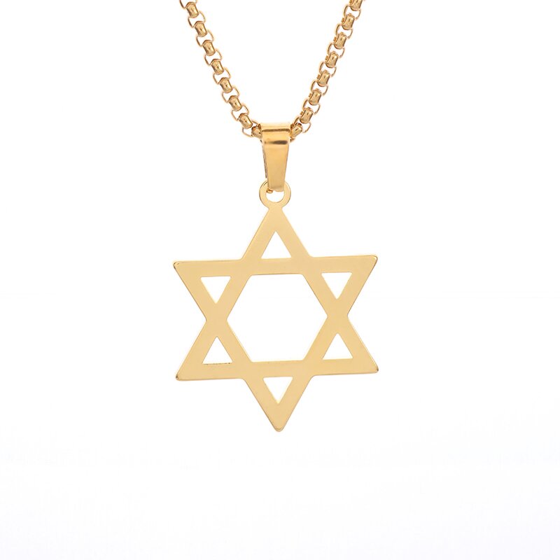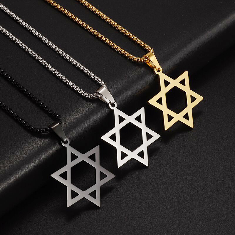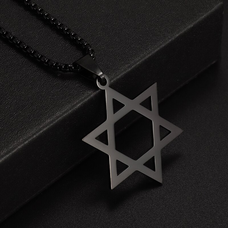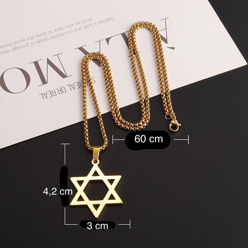 Pendentif en forme d'étoile de David avec son collier assorti : en acier inoxydable de qualité