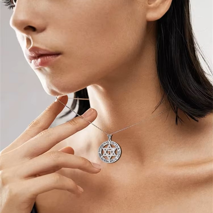 Ce pendentif religieux est conçu en acier inoxydable, alliant robustesse et durabilité pour un usage quotidien. Son étoile centrale, ornée de l’inscription ‘chai’ pour rappeler la valeur de la vie, rayonne de symbolisme. Les gravures en hébreu qui l’entourent renforcent son rôle de talisman protecteur, un rappel constant de la foi et de la force intérieure, adapté à ceux qui chérissent leurs racines spirituelles.