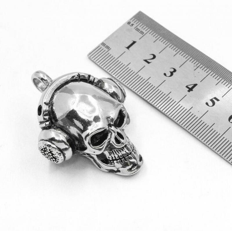 Ce pendentif tête de mort avec son casque audio en alliage de zinc est très original. Il est brillant car l’acier a été poli à la perfection et les détails sur le casque sont frappants de vérité. Il est assez grand, environ 5 cm et conviendra plutôt à un homme avec sa chaîne assortie.