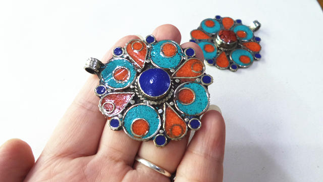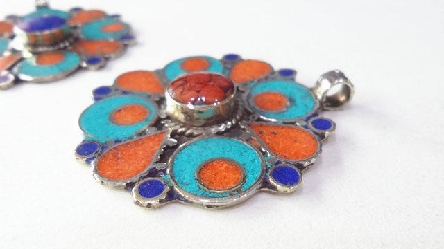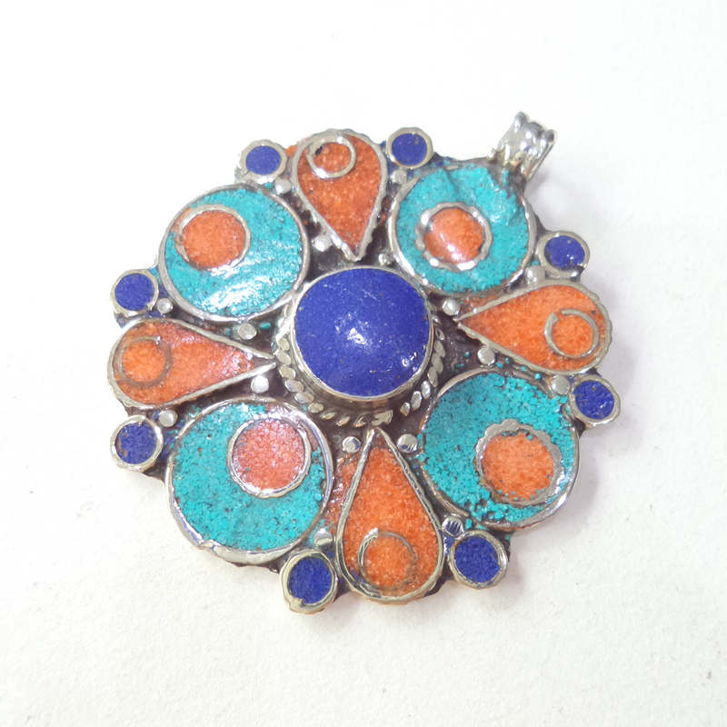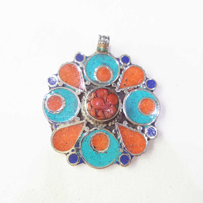 Ce pendentif est inspiré des bijoux traditionnels de la culture et de l’artisanat tibétains. Son motif géométrique crée un mandala de couleurs brutes, conférant à ce pendentif une apparence riche et authentique. Les couleurs vives de ce bijou permettent de le porter avec même les tenues les plus sobres, car il saura se démarquer et attirer l’œil.