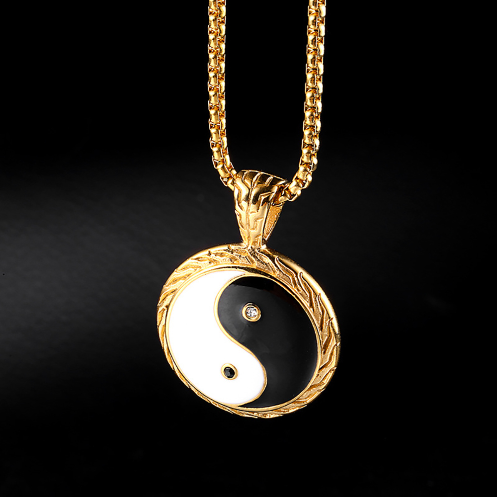Pendentif YinYang en acier inoxydable avec chaîne assortie